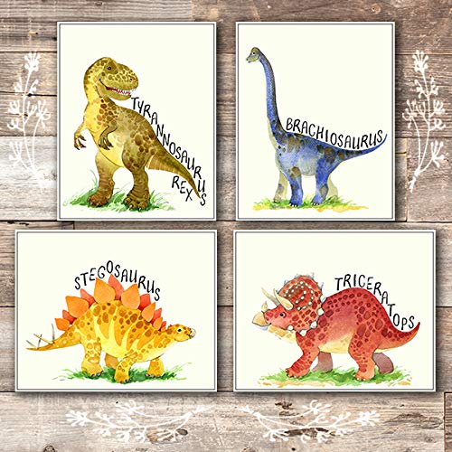 Dinosaur Bedroom Decor Wall Art Prints (Set of 4) - Unframed - 8x10s