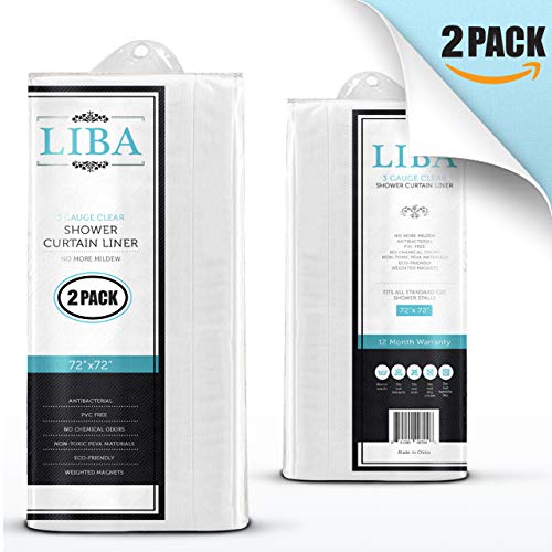 - LOOKS GREAT AS A SHOWER CURTAIN: The purchase includes a pack of two shower liners measuring 72 inches by 72 inches each. This versatile shower liner can be used by itself if you prefer the simple look of a vinyl shower curtain.